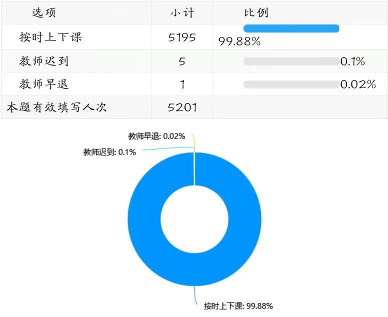 本学期教师上课情况正常,偶有迟到早退的老师。(详见下图表)