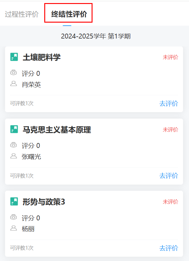 (9)如果已经完成对该教师的评价(评价次数达到最大值),不能再评价,评教按钮显示置灰状态。