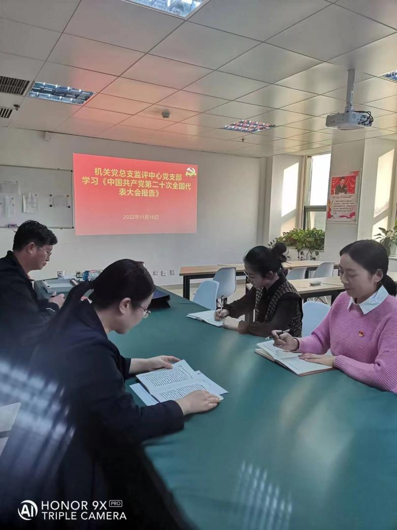 11月10日下午,机关党总支监评中心党支部在行政楼717会议室组织党员学习《中国共产党第二十次全国代表大会报告》,监评中心党支部全体党员同志参加了会议。