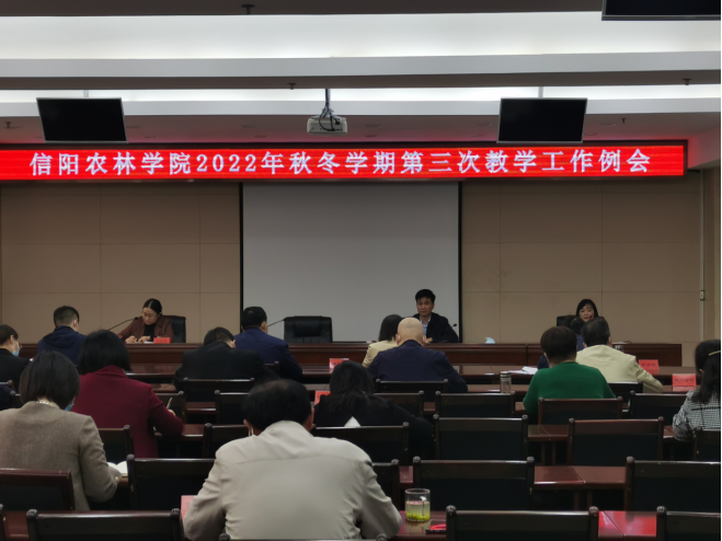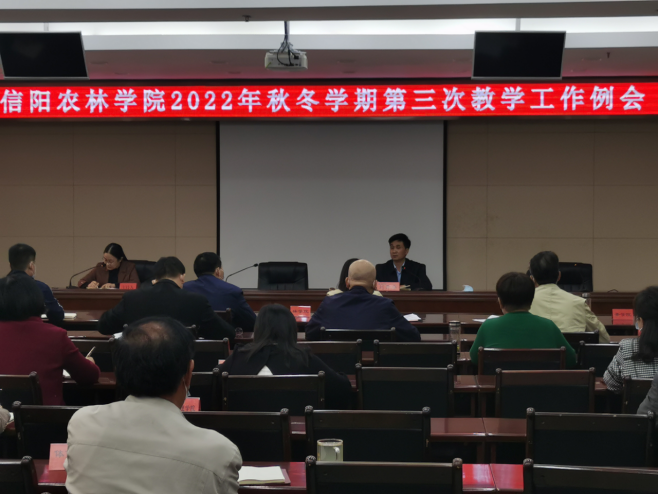 2022年10月24日下午,学校在综合办公楼一楼会议室召开了2022年秋冬学期第三次教学工作例会,副校长赵聘、副校长刘开华出席会议,各教学单位、教学质量监控与评估中心、教务处参加会议。会议由张淮主任主持。