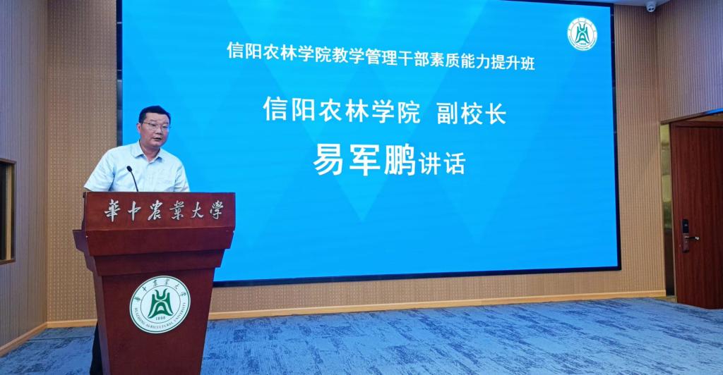 7月26日上午教学管理干部素质能力提升培训班开班。校党委委员、副校长易军鹏要求参训人员端正学风,从政治高度认识培训的重要性;学以致用,以实干担当提升培训的实效性;严明纪律,用严实要求强化培训的严肃性,学有所悟,学有所得,真正做到以学促干建新功。华中农业大学教育培训学院院长郑杰致辞,并为培训班授旗。