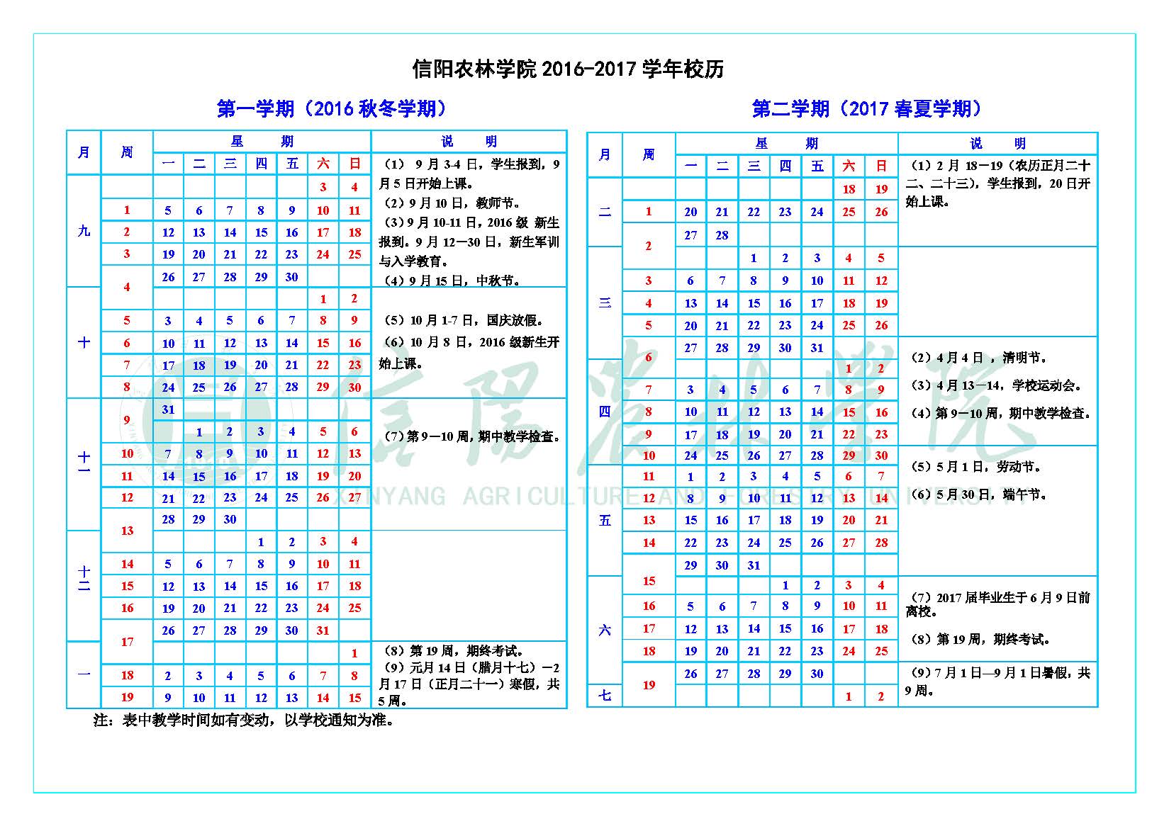 2016-2017学年校历