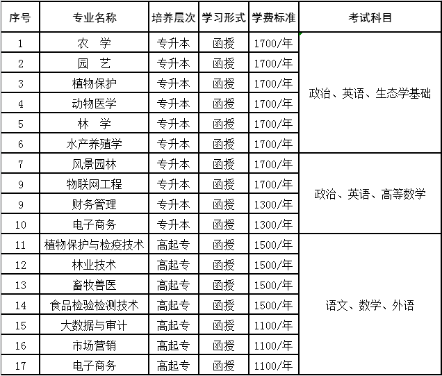 函授理工类: 专科1500元/年, 本科1700元/年;