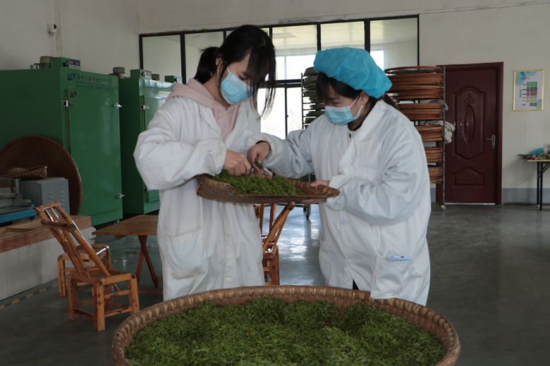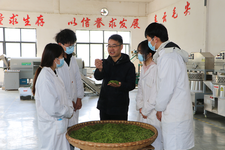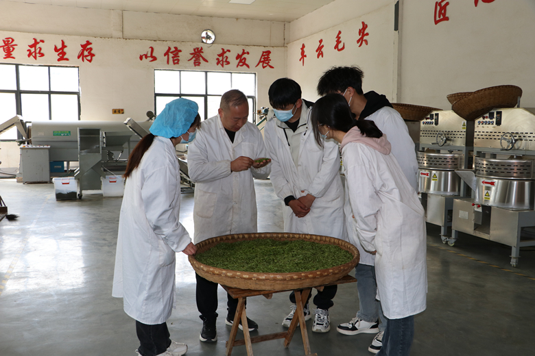 在浉河区董家河镇车云山茶厂,跟踪服务队成员了解了2023级学历继续教育学生余海群、李亮等茶农茶叶的采摘情况,调研了信阳茶的炒制情况,搜集了解茶农种植、采摘、加工过程中的问题。该茶厂为beat365在线平台官网继续教学实习实训基地,同时也为beat365在线平台官网全日制茶学专业学生提供实习岗位。目前处于茶叶的采摘期,也是茶学专业学生的最佳实习期。beat365在线平台官网茶学院安排了4名2023级茶学专业学生在此实习,他们白天负责接待客户,向客户介绍茶厂及茶叶相关知识,夜晚则在炒茶车间进行实操。同学们在实习过程中充分发扬吃苦耐劳、团队协作精神,在实习中将理论知识与实践操作紧密结合起来,不断提高了专业技能、岗位责任意识和适应能力,为以后的就业创业奠定了坚实基础。