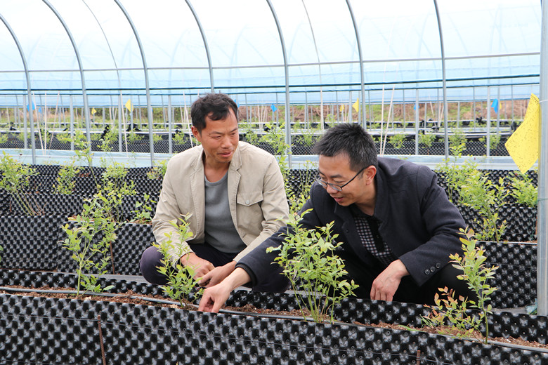 在信阳市骏翔生态农业有限公司,企业负责人、高素质农民培训学员龚本富向跟踪服务队伍介绍了目前公司的蓝莓示范基地建设情况,专家们围绕蓝莓种植、育苗、技术服务、深加工品研发、蓝莓鲜果及加工品销售、青少年户外拓展教育于一体的产业综合体进行了综合指导。并鼓励他在此领域深耕细作,为现代农业的绿色发展树立典范。