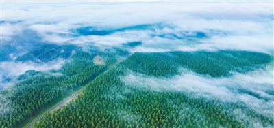 提升生态系统质量和稳定性 位于河北承德的塞罕坝机械林场云雾缭绕,林海浩瀚。“十四五”时期,全国森林覆盖率达25.09%,比2020年提高约2个百分点,我国成为增绿最多最快的国家。 刘满仓摄(影像中国)