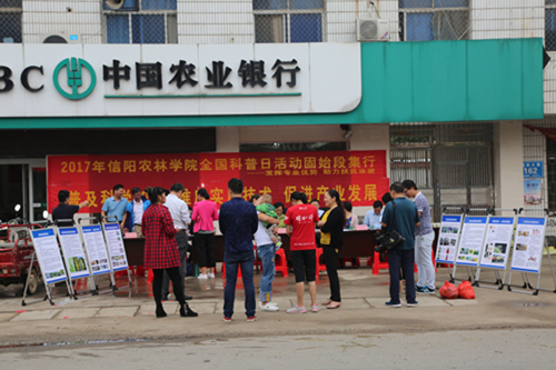 为积极响应2017年全国科普日活动,beat365在线平台官网领导高度重视,按照“结合实际,深入基层,结合本地扶贫工作广泛开展科普活动”的要求,学校把科普日活动地点选在beat365在线平台官网省派第一书记驻村所在地――固始县段集镇。精心制作了涵盖农学、水产、茶学、畜禽生产、林学、园艺、食品加工、食用菌生产等农业领域的科普展板,准备大量“种养加”实用技术图书、资料。