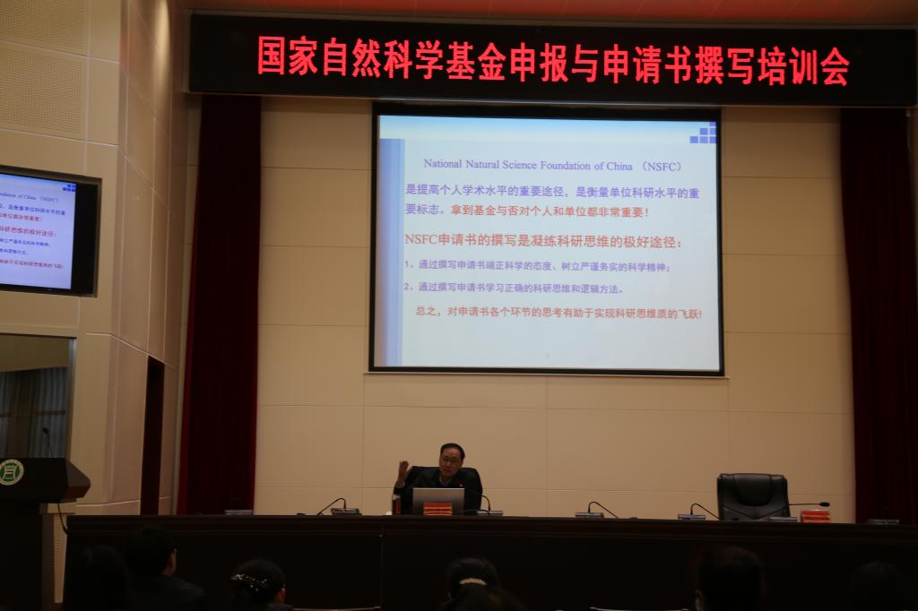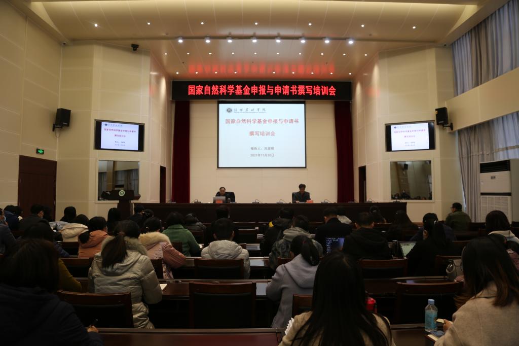为进一步推动beat365在线平台官网国家基金项目的申报工作,有效提升beat365在线平台官网国家基金项目的申报质量,11月30日下午,学校在图书馆6楼会议室举办了国家基金项目申报培训会,会议邀请信阳师范学院副校长刘彦明为老师们做了题为《国家自然科学基金申报及申请书撰写》的报告,各分管科研的副院长、科研秘书、博士、副高职称及以上和预申报2022年项目的教师共计80余人参加了会议,会议由副校长赵一鹏主持。