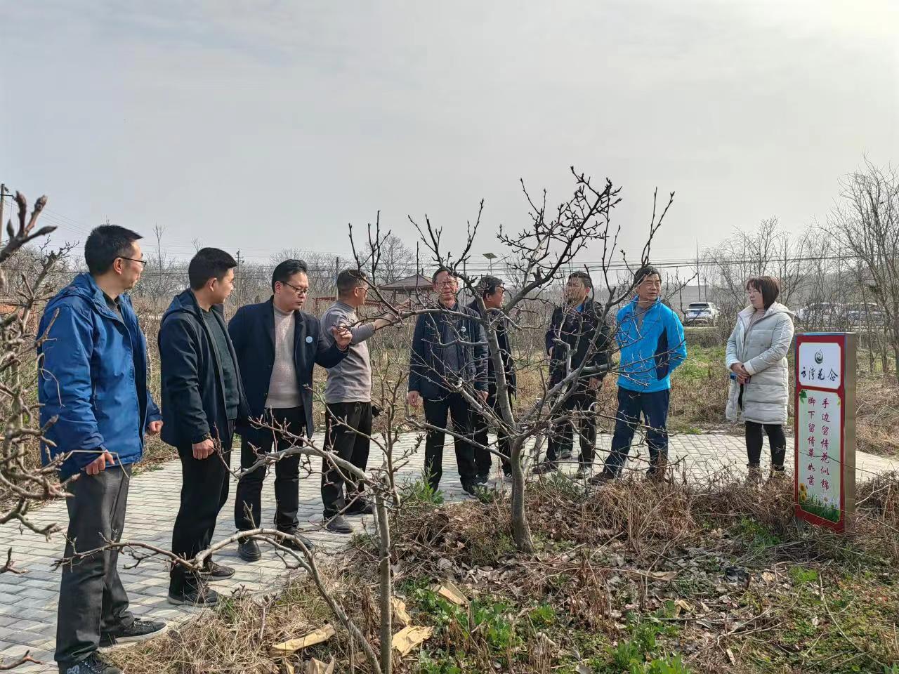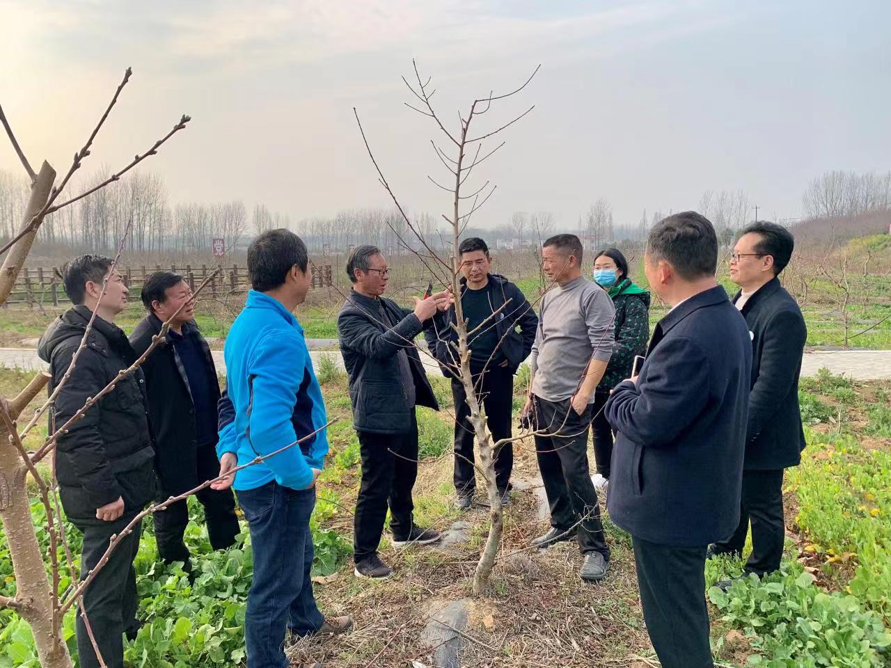 服务队首先来到方湾花念休闲观光有限公司梨树、桃树种植园区,对梨树、桃树冬前修剪效果、树势和越冬病虫等进行了查看。服务队一行对园区管理人员进行了现场技术培训,纠正了修剪时留桩、果枝空间分布不合理等问题。针对梨树长势较弱,授粉不良、坐果率不高等长期存在的问题,提出补充复合肥的三种可选方案,即在果树一侧开沟施肥、液化后灌注和滴灌,并强调最佳施肥时间为秋季,纠正了管理人员坚持使用叶面肥进行补救的思想。服务队还帮助联系了能够提供授粉梨树的企业,建议在园区补栽市场畅销品种,一方面可以提高现有梨品种的授粉率和结果率,还可以丰富园区新梨品种,提高市场竞争力。