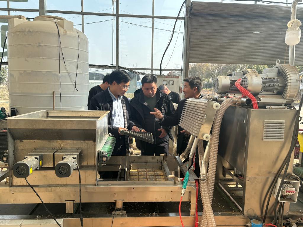 服务队一行先后实地查看了光山县盛世源农机专业合作社,光山县青龙河土地信用专业合作社的冬小麦生长情况。针对当前及今后一段时期如何加强小麦的田间管理,服务队提出了3条建议,一是要加强田间水分管理。由于前期雨雪天气较多,对积水严重的部分田块,要及时做好排水工作,提高地温;二是要加强养分管理。在气温稳定升高后,可每亩追施8公斤左右的尿素,促进苗情转化;三是要做好化除工作。趁小麦进入拔节期前,可采用唑啉草酯、啶磺草胺、氯氟吡氧乙酸等药剂进行除草。在光山县青龙河土地信用专业合作社,服务队一行还对该合作社正在进行的再生稻流水线育秧现场进行了指导,同时服务队还叮嘱合作社负责人由于当前气温波动比较大,一定要注意育秧棚温度稳定,避免高温烧苗和低温冷害,给生产造成不必要的损失。