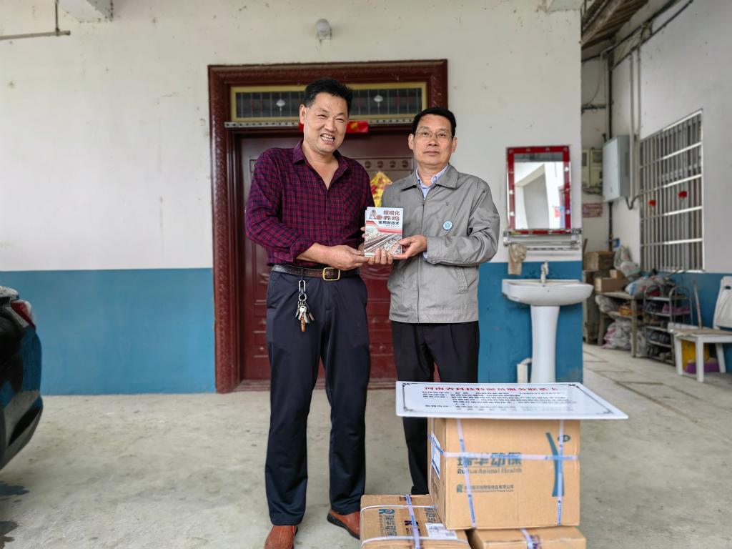 服务队首先来到淮滨县期思镇兴农蛋鸡场,捐赠一批鸡场消毒剂和规模化养鸡使用新技术手册,对蛋鸡生产环境控制与疫病综合防控技术、鸡粪无害化处理和资源化利用技术进行了指导。赵聘就优质鸡蛋质量标准向鸡场负责人进行了详细讲解,提出了高品质鸡蛋品牌建设与市场营销方案。