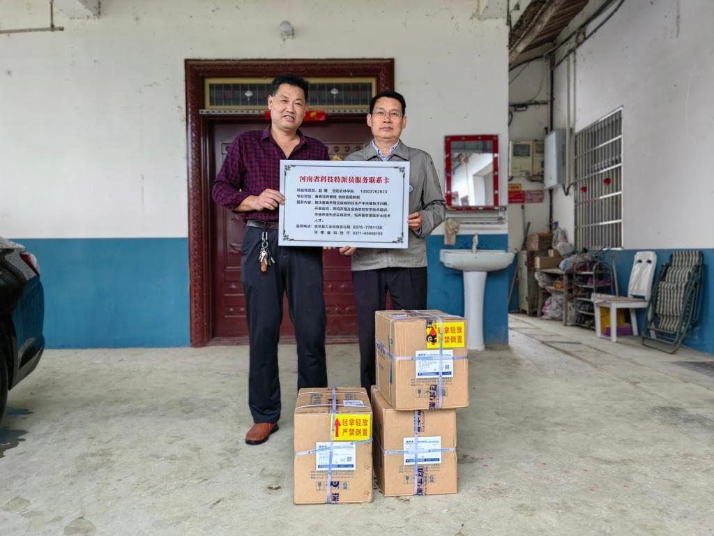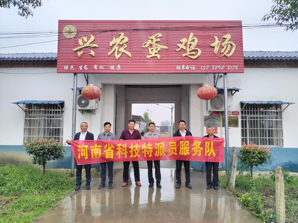 6月4日,冒着瓢泼大雨,副校长赵聘教授带领史洪中教授、刘合满教授组成河南省科技特派员服务队,驱车赶往淮滨县,指导蛋鸡生产、饲料加工和有机肥生产。