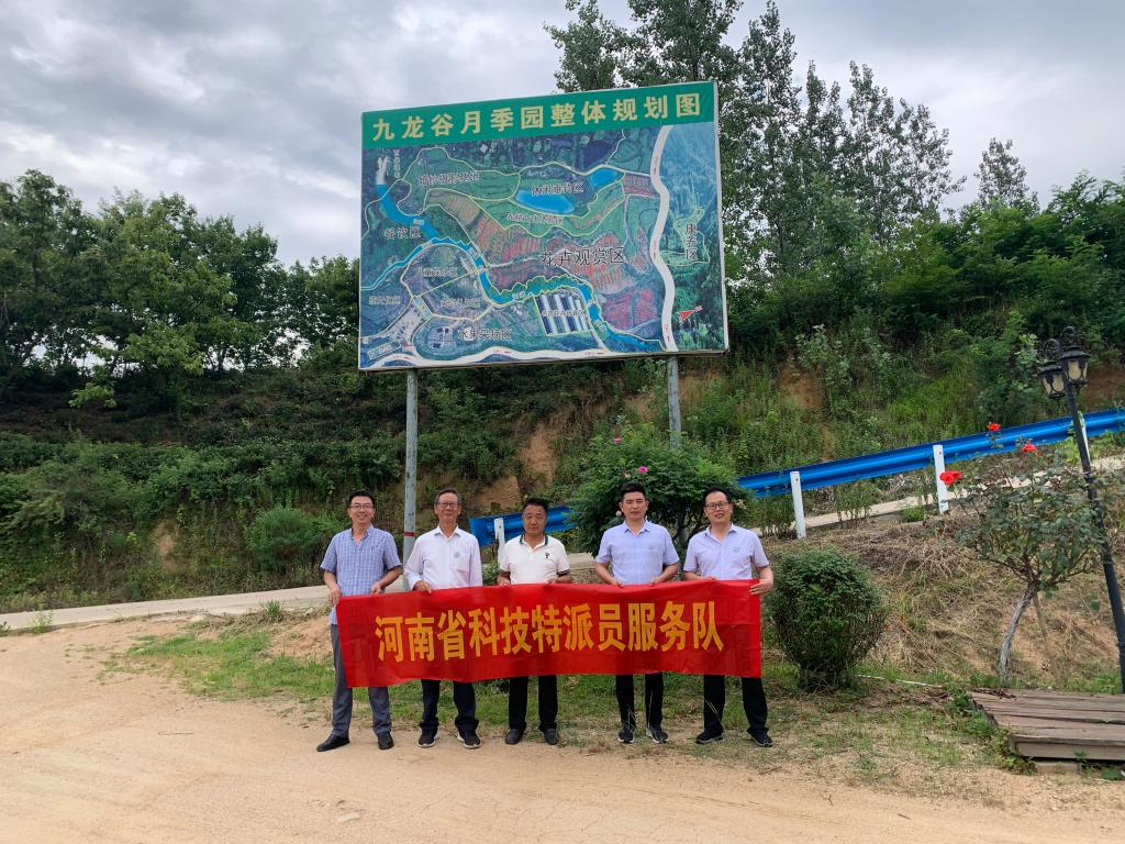 2023616日,河南省科技特派员范宏伟、叶兆伟、张凯、潘鹏亮等组成服务队赴罗山县金智农业科技有限公司,开展春末夏初果树、月季田间管理服务。