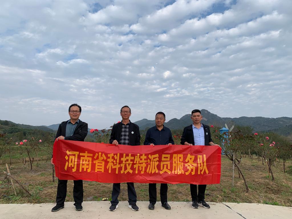 露凝山草映晚秋,叶凋枝显布丰收。2023年10月28日,河南省科技特派员范宏伟、张凯、潘鹏亮等赴罗山县金智农业科技有限公司开展秋季果树修剪等技术指导。