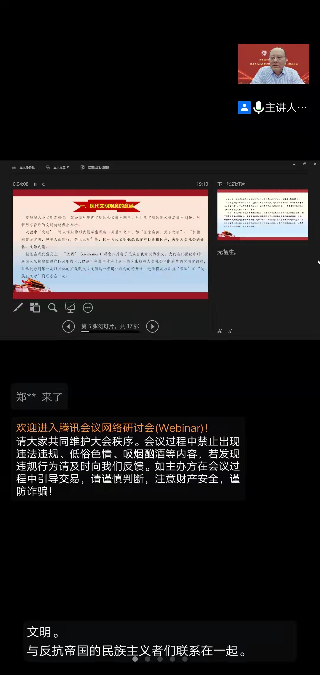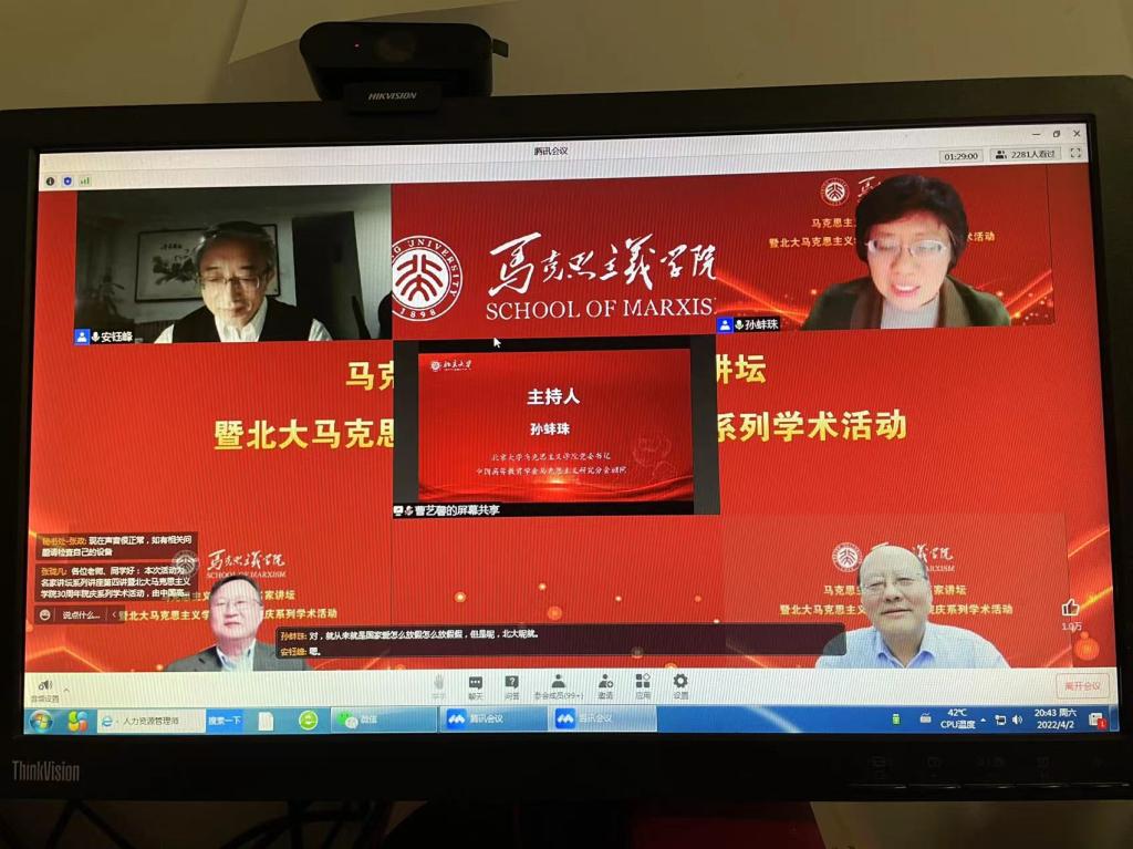 学院为深入落实《beat365在线平台官网 2022 年“科研氛围营造年” 活动实施方案》,提升学院科研能力和水平,推动学院内涵发展建设,为建设地方应用型高水平大学提供有力支撑,于4月2日晚,组织全院教师线上云端收看由中国高等教育学会马克思主义主义研究分会和北京大学马克思主义学院共同主办的马克思主义理论研究名家讲坛(第四讲:从中国道路看人类文明新形态)暨北京大学马克思主义学院30周年院庆系列学术活动。