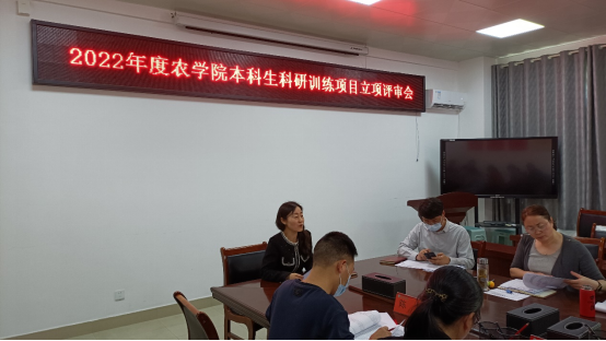 2022年4月21日下午,农学院在2A316召开2022年度本科生科研训练项目立项评审会。校科技处刘秋员博士、园艺学院何晖副教授、茶学院陈义副教授、农学院领导班子成员及本科生科研训练项目工作小组成员参与了此次评审。评审会由农学院副院长董丽平主持。