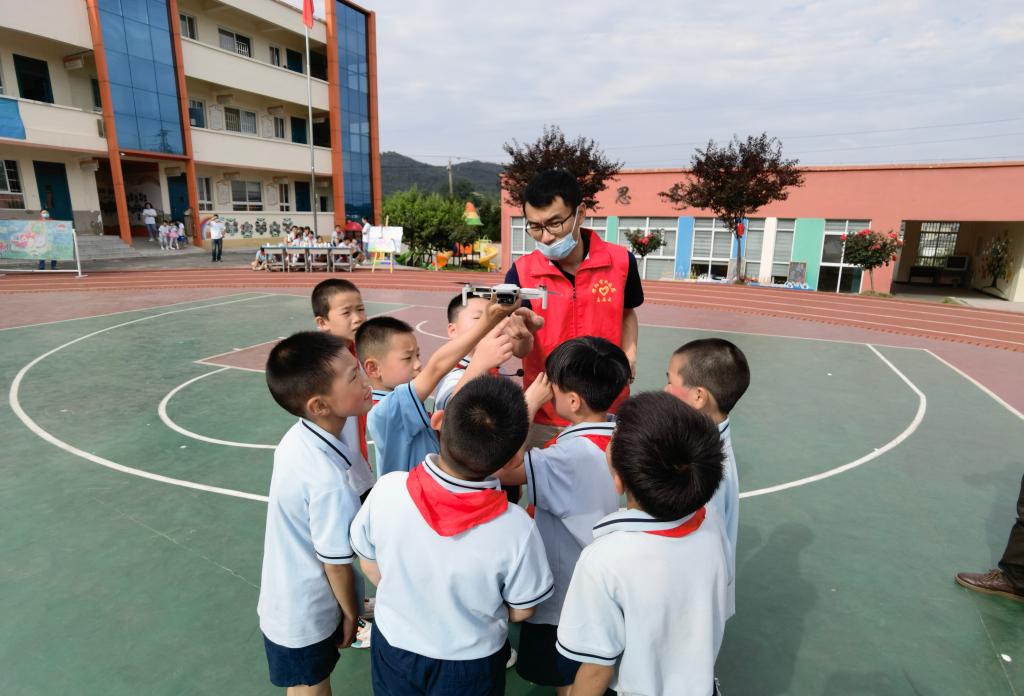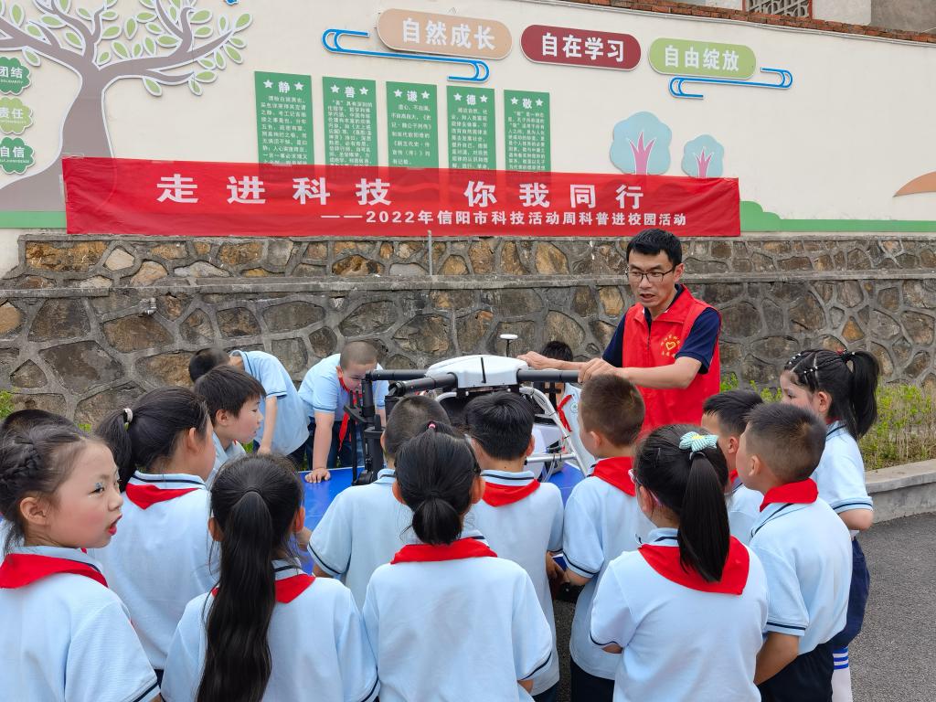 在昆虫标本教学课堂上,吸引了大量学生们的围观。潘鹏亮老师生动地讲解,让学生们见识到大自然的鬼斧神工,千奇百怪的昆虫种类激发了学生们的好奇心和学习的兴趣,让学生们开阔了眼界,增长了知识,增强了他们对科学技术的向往,满足了他们探索的热情。随后,进行的无人机表演,更是将此次活动推向高潮。王国君老师展示了无人机的飞行特点及在农业等领域的应用,让学生们充分领略了科技的奥秘与神奇。小学生们从小对无人机、对飞行感兴趣,把科技创新思维从小植入学生们的脑海中,也真正体会到科学带来的快乐和科技的神奇魅力。
