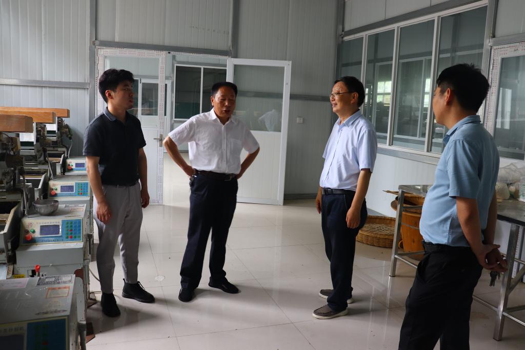 郭桂义就桐柏玉叶标准与桐柏县茶叶局副局长方忠斌、茶叶协会会长冯松田进行了认真交流讨论;根据相关国家标准和桐柏玉叶的制作方式,郭桂义对桐柏玉叶标准中鲜叶要求、制作要求、感官审评用词等方面进行分析,通过商讨,确定了桐柏玉叶。随后郭桂义一行前往天成茶业、桐柏清淮茶业有限公司、黑明寺茶叶专业合作社等公司调研茶叶生产线和近期销售情况,对生产线机械化进行考察,咨询企业年生产量,关注企业需求,方便后续科技服务。最后前往桐柏山野茶开发有限公司进行考察,郭桂义先是审评了该公司制作的白茶,并对白茶制作提出要注意萎凋工艺以及品种适制性问题。而后前往禺峰的野茶园进行茶树品种及来源考察,郭桂义讲这片茶园是前期从安徽引进,后期有段时间处于无人管理,因此在称谓上应该更适合野放茶园而不应该是野生茶园。与企业就茶旅游资源开发与茶旅融合发展问题进行深入交流,提出建设茶园与茶叶观光基地、茶叶非物质文化遗产展示中心、茶叶体验中心、茶文化研学、科普与培训中心、茶餐、茶宿等旅游项目,将公司茶旅游项目建设成为集茶叶观光、体验、餐饮、住宿与茶文化培训一体的综合性茶旅游基地。