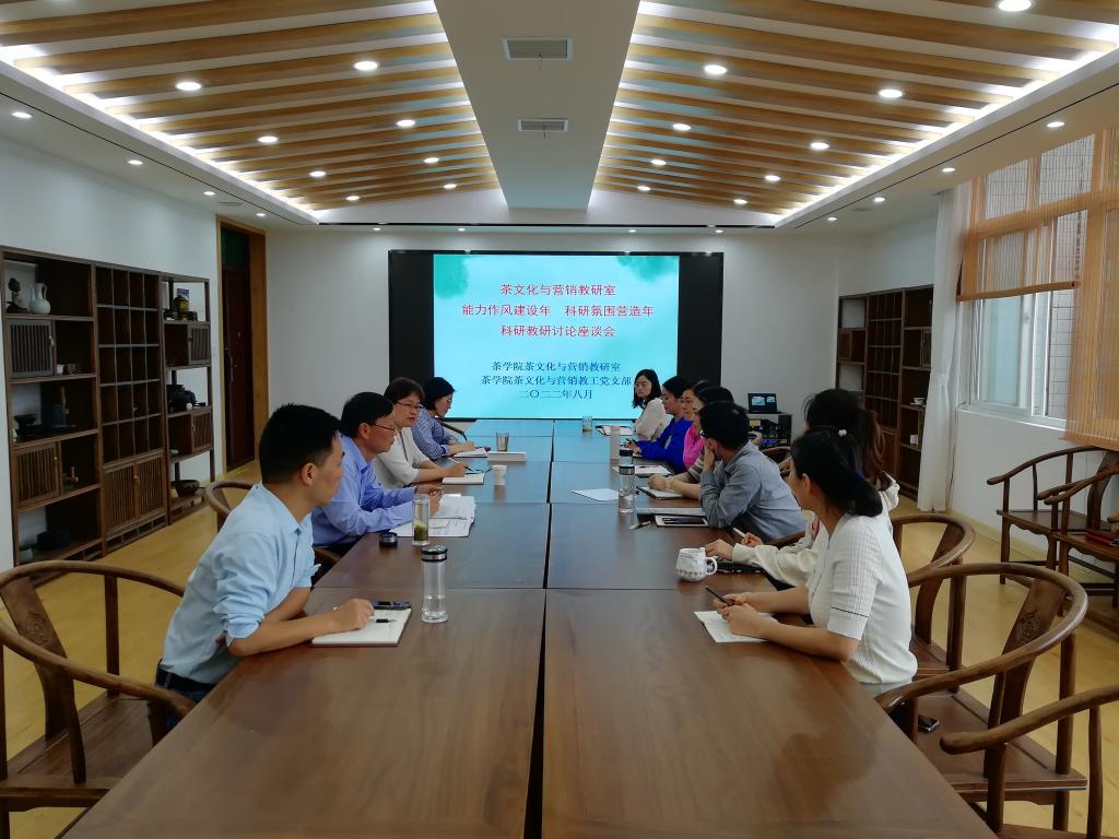 8月30日,为进一步提升教师科研能力,茶学院茶文化与营销教研室、茶文化与营销教工党支部联合展开了以“能力作风建设年”活动、“科研氛围营造年”活动为抓手的科研能力提升讨论座谈会。座谈会同时邀请了孙慕芳副院长、陈义副院长指导工作。