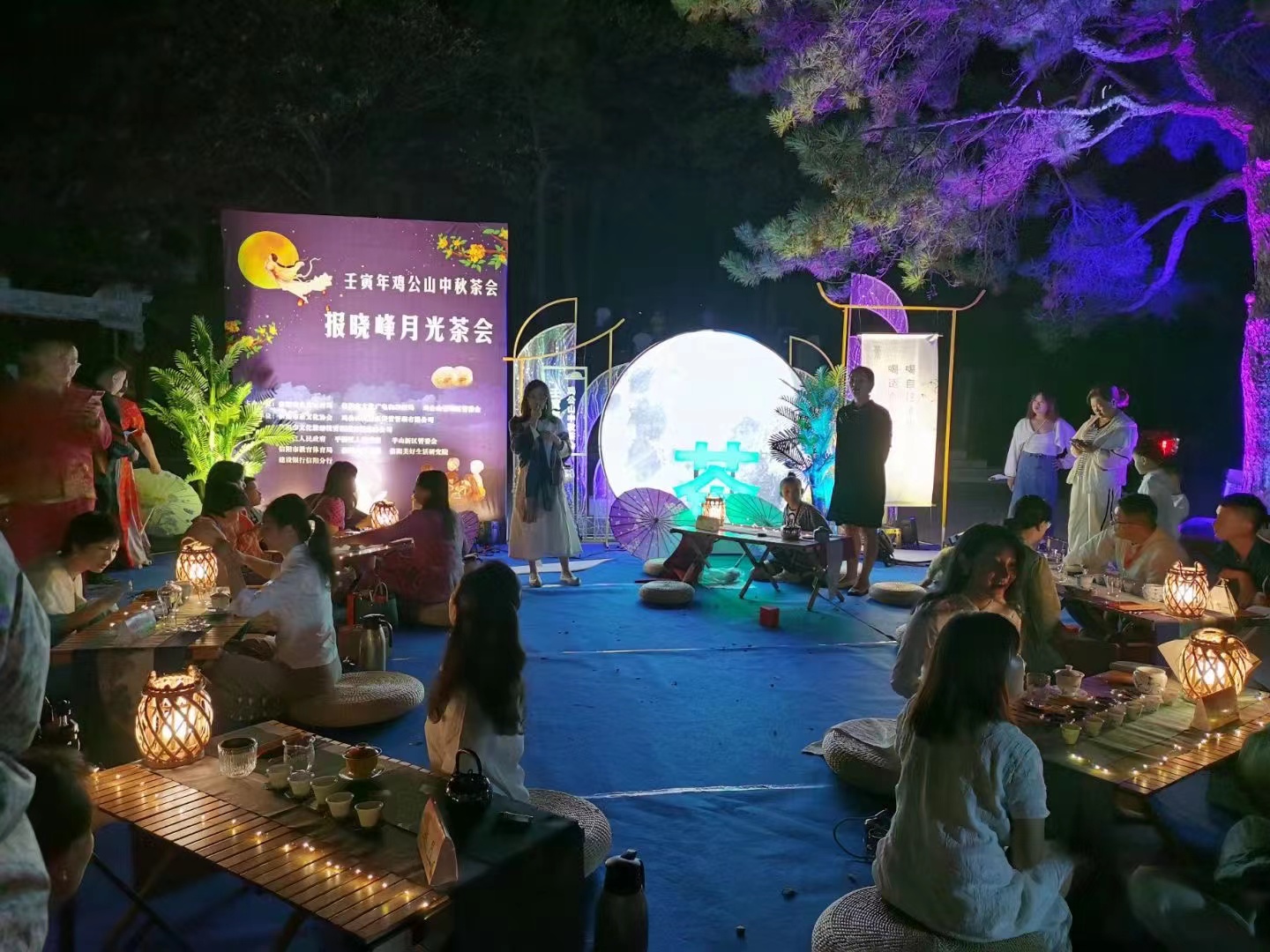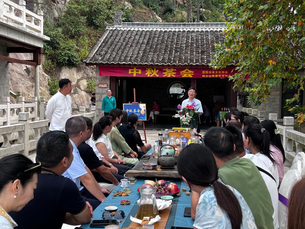 由教师王杉组织的《情满中秋,月圆茶香》中秋之夜月光茶会在报晓峰广场拉开序幕,嘉宾们赏月品茗,共叙茶情。茶人直播间全天候实时直播,尽显茶人风采,展现茶乡面貌,推介信阳变化,外宣信阳三茶产品。
