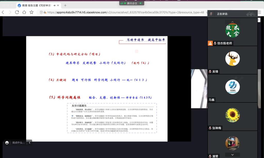 通过培训,帮助广大教师全面了解国家项目申请和资助政策相关信息,加强中青年教师队伍建设,提高项目申报质量,掌握项目的申报技巧以及申请书的撰写要求和规范格式,提高基金项目申请的立项率。帮助老师们进一步理清科研思路,明确科技工作的发展方向,提升科技创新能力水平。(潘赟)