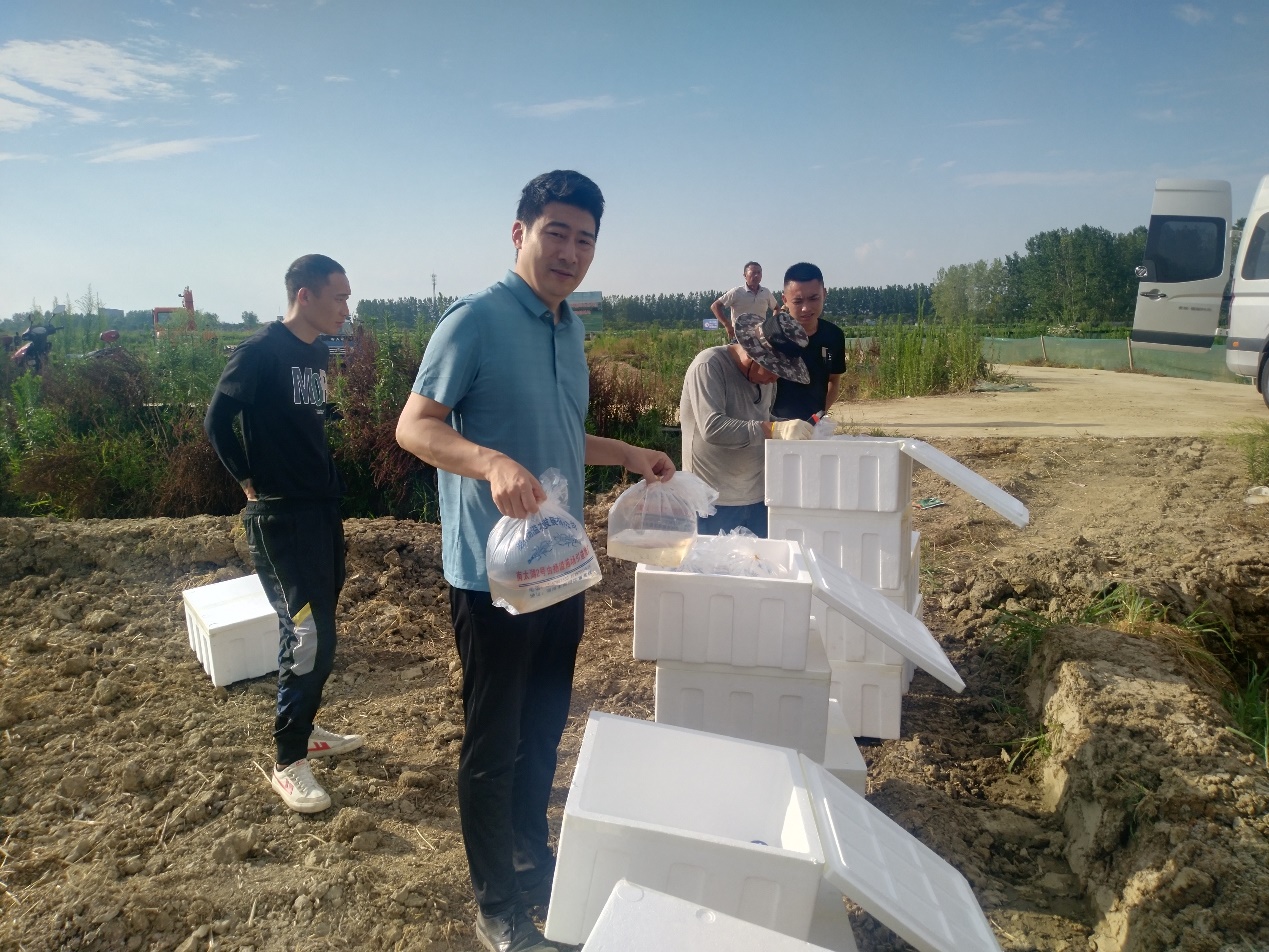 服务团一行于6月9日赴信阳金实种植专业合作社落实虾苗投放前期部署工作