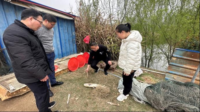 19日下午,科技特派员服务队来到商城县丰源种养殖专业合作社,由于高温干旱少雨,导致池塘水体混浊、水质较差,水面漂浮有死鱼,未能及时捞出,同时该合作社在池塘里又养了近千只麻鸭,加剧了养殖水体的污染。针对以上出现的各种问题,科技特派员们建言献策,提出加大新鲜水体的注入,增加增氧机的工作时长,及时捞出死鱼进行深埋处理,并用生石灰对水体进行消毒作业,在端午节临近的销售旺季,尽快将成熟麻鸭上市售卖,提高经济效益的同时减轻水体污染。最后还向养殖户赠送了救生圈。