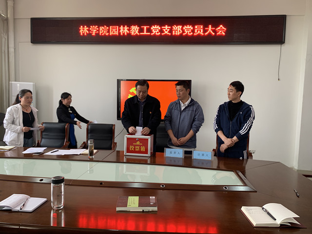 3月29日下午,林学院园林党支部在科技楼1C501会议室召开党员大会,选举产生新一届支部委员会。会议由林学院党总支书记(原林学教工党支部书记)赵师成主持。