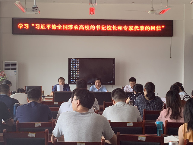 会上,赵师成带领大家学习了《习近平给全国涉农高校的书记校长和专家代表的回信》以及《安吉共识——中国新农科建设宣言》,赵书记指出,在新中国成立70周年、第35个教师节来临之际,习近平总书记的回信高度肯定涉农高校为“三农”事业发展做出的积极贡献,极大地鼓舞了广大涉农院校、专业和广大师生的爱国热情和奋斗精神。习近平总书记的回信,对涉农高校办学方向提出了新的要求,对广大师生予以勉励和期望,广大师生要认真学习贯彻落实习总书记回信精神,牢固树立爱农知农情怀,以强农兴农为己任,积极投身新农科建设,为实现农业农村现代化矢志奋斗,为学校建设发展作出新的更大贡献。