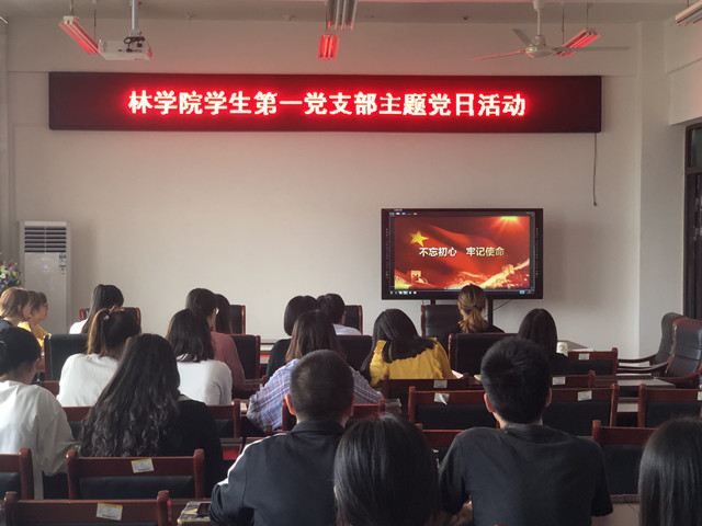 924日下午,林学院学生第一党支部在科技楼1C501开展不忘初心,牢记使命主题党日活动,活动由林学院学生第一党支部书记肖亮主持,全体支部党员和部分入党积极分子参加。