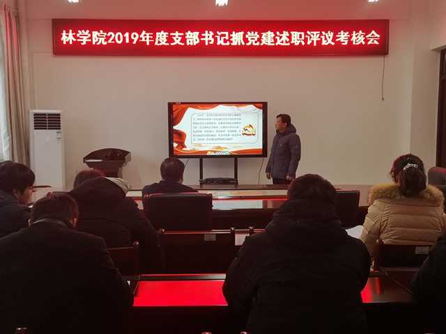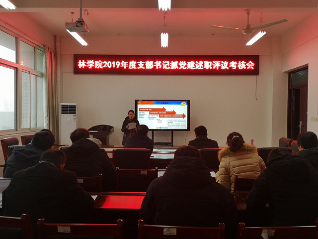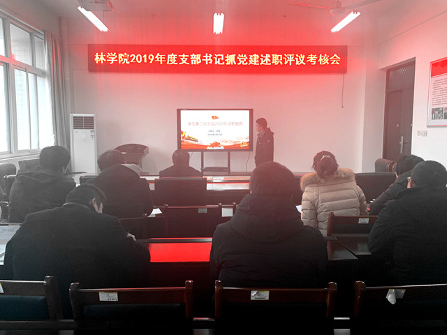 为全面贯彻党的十九大精神及党的十九届四中全会精神,深入落实习近平新时代中国特色社会主义思想,切实履行“不忘初心 牢记使命”,促进基层党建全面进步、全面过硬,不断抓好高校基层党建工作。1月13日下午,林学院党总支在1C501会议室召开2019年度党支部书记抓党建述职评议考核会。学院党总支书记赵师成、院长孙耀清、副书记肖亮、副院长王辉,教工、学生党支部4名书记以及全体教师党员参加会议。