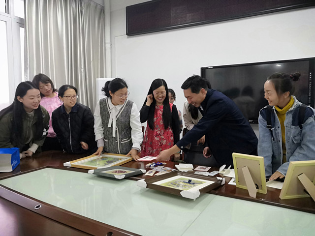 随后,陈教授与林学院师生代表在实验楼1C501座谈,由孙耀清院长主持。陈老师介绍压花艺术的科研情况,师生代表提出自己在压花中遇到的问题,陈教授对学生压花作品加以点评等环节。
