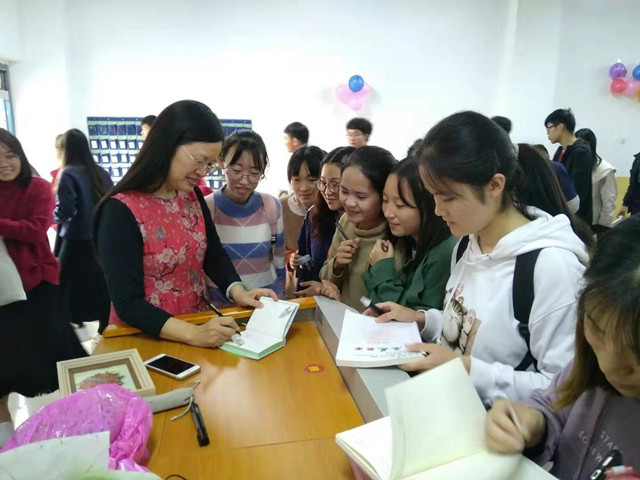 2019年10月29日下午14:30,林学院邀请华南农业大学陈国菊教授给林学和园林专业学生讲授“走进压花艺术的世界”主题知识讲座。陈老师从什么是压花艺术、压花艺术的功能和作用、压花艺术的类别和如何学习压花艺术几个方面讲解,深入浅出,现场与学生互动气氛热烈,掌声不断,获得现场学生的一致好评。讲解结束由学生代表送花束对陈教授的到来表示感谢,最后很多同学拿着压花艺术教材或笔记本让陈教授签名并与其合影留念。