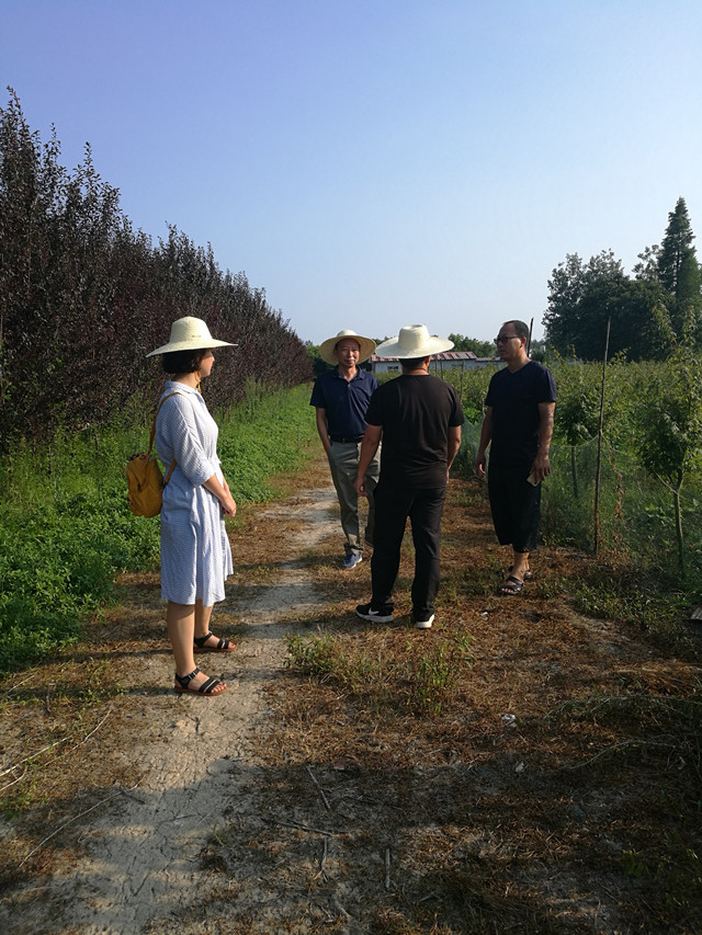 徐俊杰一行来到固始县南大桥乡瑞达种植专业合作社,合作社面积820余亩,年销售额600余万元,通过土地流转入股分红、吸纳贫困户务工等方式,带动周边贫困户增收,为脱贫攻坚工作做出了贡献。在合作社负责人李卫东的带领下,四位老师深入合作社园区,分别对园区种植的红叶李、五角枫等园林苗木以及林下种植、养殖在生产中遇到的问题给予了现场指导,在夏季肥水管理、病虫害绿色防控技术等方面提出诸多合理化建议。
