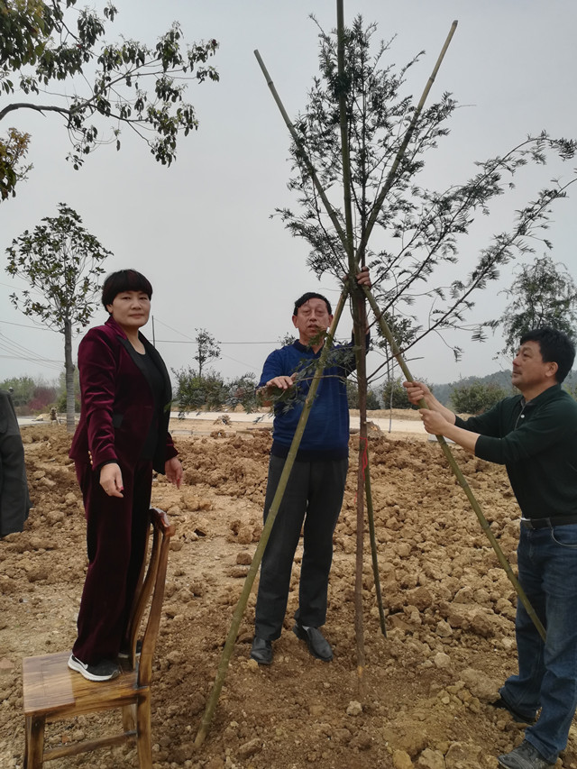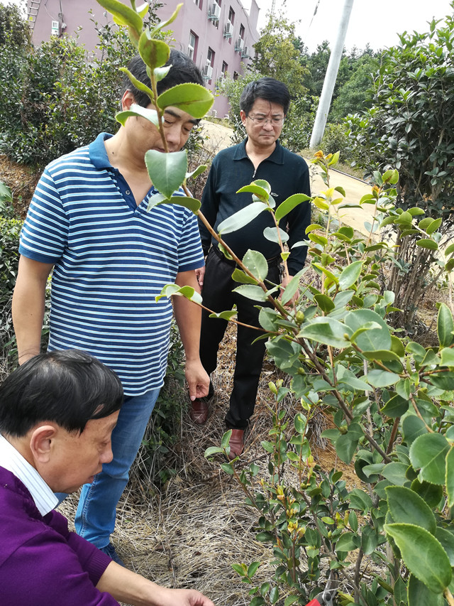 团队成员送去由李大明老师培育的红豆杉、石榴、嫁接黄杨球等树种苗木12棵,并亲自指导栽种于公司场地,四位老师在察看基地油茶长势后,进行了油茶树修剪示范,并做出了下一步管理技术安排。