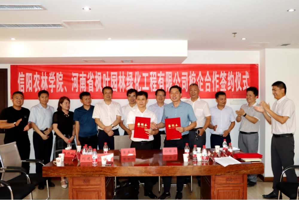 最后,林学院院长孙耀清和蔡正江代表校企双方签订合作框架协议,并共同为校企共建“信阳市特色乡土树种培育工程技术研究中心”揭牌撰稿/林学院 肖亮 摄影/林学院 肖亮)