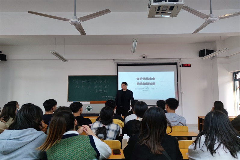 会上,各班辅导员首先带领大家分享了各自经历的网络安全事件,并深入讨论了网络安全存在的隐患以及现实生活中存在的网络危害,以此来提高同学们的安全防范意识,给各位同学敲响警钟。随后,辅导员老师向同学们细致地讲解了网络安全的相关知识,使学生认识到网络安全的重要性。同时,告诫同学们要依法、安全、文明上网,遇事不冲动、不盲目,切实保护好人身财产安全。