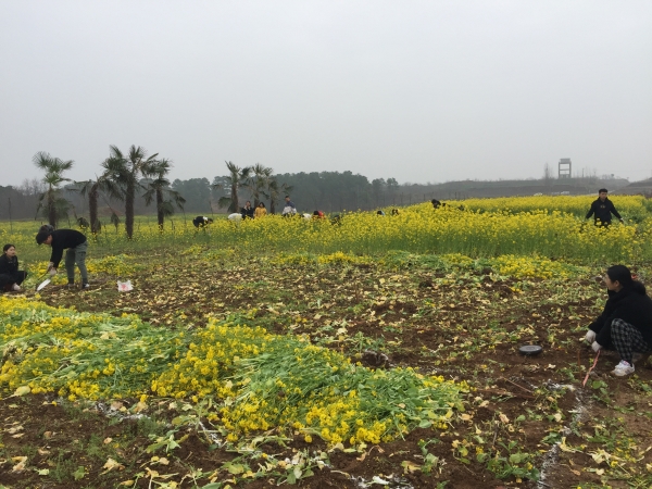天道酬勤,力耕不欺。2021年3月13日至14日,林学院青年教师董楠博士带领“信农URP训练营”20多名本科生前往吴家店镇十里村的太阳坡寨beat365在线平台官网实习基地开展茶园复合经营田间试验。
