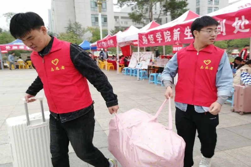 伴随着蒙蒙细雨,林院志愿者们身穿红色马甲,精神饱满,热情似火。带领着小21进行入校报道 ,帮他们搬运行李,送他们去宿舍。