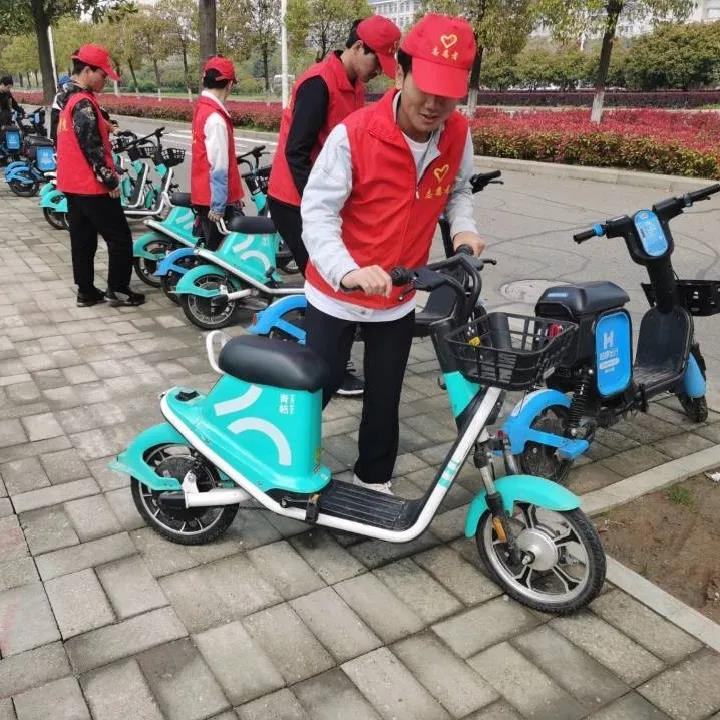 每组成员都尽其所能,工作细致入微,依次对共享单车进行规范的摆放,将倒在路上的单车扶起来归位,并且对沿途及车内的垃圾进行清理。