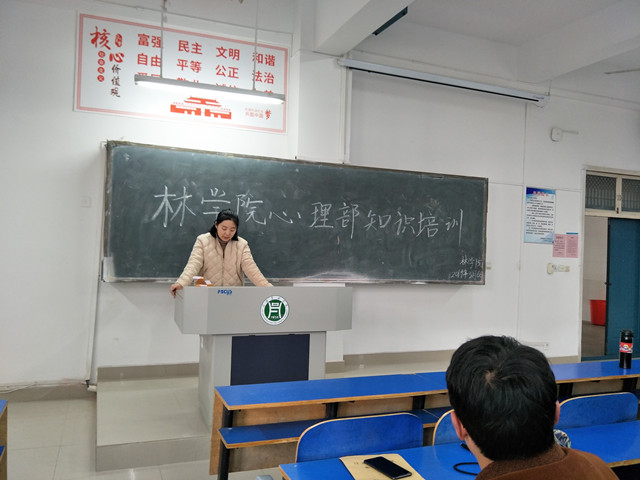 于3月6日举办心理知识培训活动。为进一步了解林学院全体同学开学后的心理状况,提高同学们的思想意识和心理素质,增强大家对心理知识的了解,林学院的心理指导赵晶晶老师,给心理部干事以及各班心理委员,详细地介绍了大学生在日常生活中遇到的一些心理问题以及相应的处理方法进行了详细地讲解。心理部也以填写调查问卷的形式,对大家进行了心理健康排查,避免出现心理危机。
