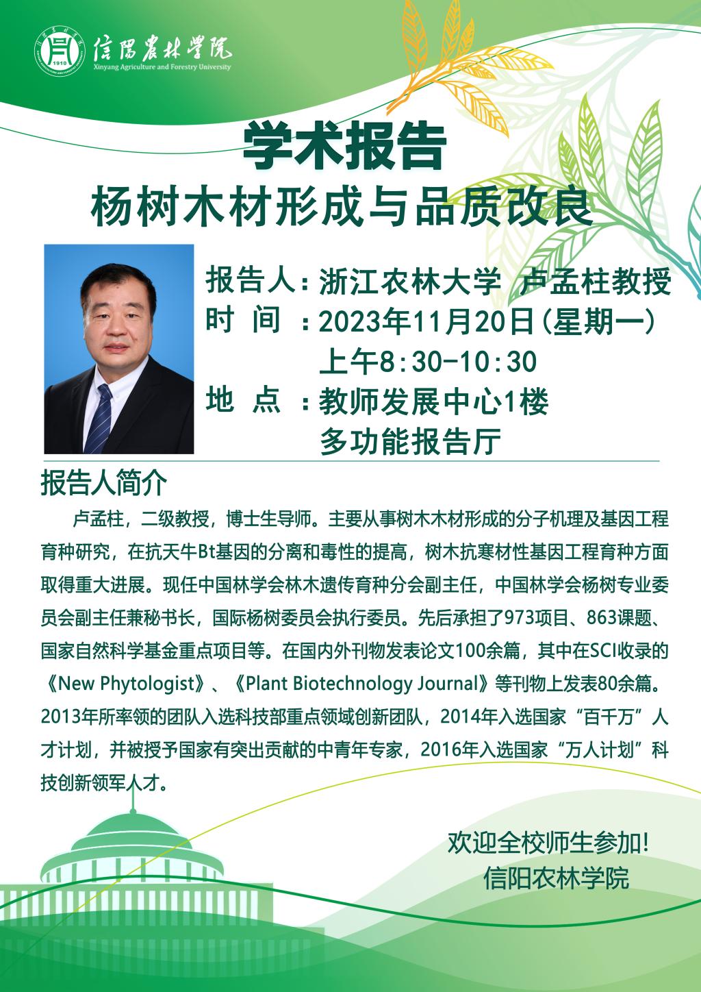 林学院“青山讲坛”系列学术报告---杨树木材形成与品质改良