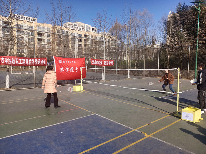 为了进一步丰富我院教职工的业余生活,锻炼身体,强健体魄,让广大教职工以更饱满的热情投入到教育事业中,农学院分工会近期成功举办2020年度教职工趣味性冬季运动会,此次运动会主题是“强身健体,团结奋进”,口号是“我运动,我健康,我快乐”。运动会共有5个项目,包括乒乓球、羽毛球、篮球投篮、两人三足和跳大绳,经过前期的农学院分工会的积极动员,共有85人次参加比赛。