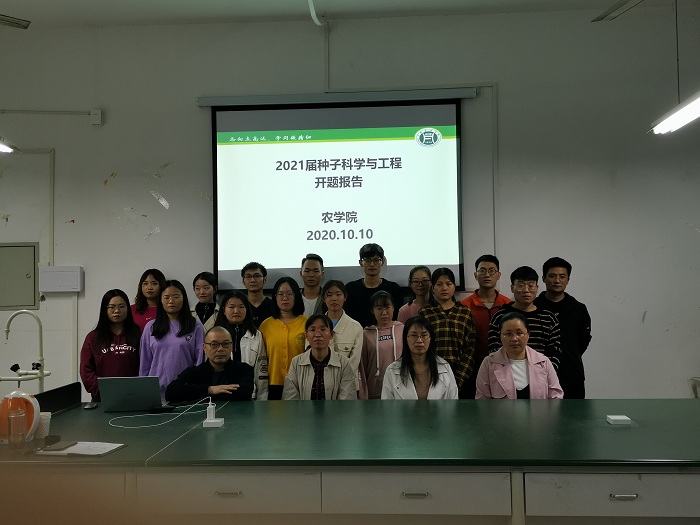 10日下午,学院召开了2021届种子科学与工程专业本科生毕业论文开题报告会。相关指导教师及2021届种子科学与工程专业全体学生参加了本次报告会。会议分为4组,分别在实验楼2A302、2A316、2A406、2A413进行。各组组长分别介绍了开题报告的要求,2021届种子科学与工程专业70名学生分别就自己的毕业论文课题,从研究背景、选题意义、主要内容、思路、方法等方面进行了汇报,参会老师对学生毕业论文课题中存在的问题提出了修改意见。