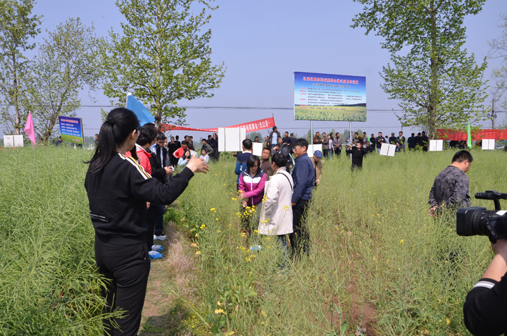 4月12日,我院教师肖荣英主持的国家重点研发计划“油菜化肥农药减施技术集成研究与示范”项目的子课题“河南区域冬油菜化肥农药减施技术集成示范”田间观摩培训会在光山县召开。来自中科院油料所、陕西省杂交油菜中心、河南省农科院等地的国家重点研发计划“油菜双减”项目相关专家、国家油菜产业体系相关岗位科学家和部分综合试验站站长及骨干莅临现场指导,我市各县区农业技术推广部门负责人、光山县部分合作社负责人、新型职业农民代表等共计80余名人员参加了现场观摩会。观摩会由项目负责人肖荣英主持。