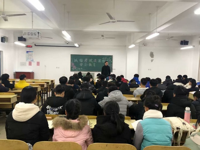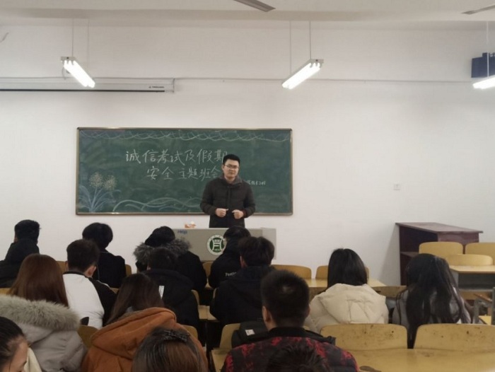各辅导员向班级同学宣读了《学生工作制度汇编》中有关考试违规违纪行为的相关处罚条例,强调了考试作弊的严重后果,并督促同学们要诚实守信、遵规守纪,考前要认真复习、积极备考,要以良好的心态和充分的准备迎接考试周的到来,达到用考试来检验学习成效的目的。此外,寒假即将到来,为了做好学生假期安全工作,各班辅导员对同学们的假期安排进行了了解,并提醒同学们在离校前一定要做好宿舍的安全工作,要提高安全意识,树立安全观念,谨防上当受骗,切实保障个人财产和人身安全,希望同学们都能平安回家、安全返校,并预祝同学们度过一个愉快的假期生活。