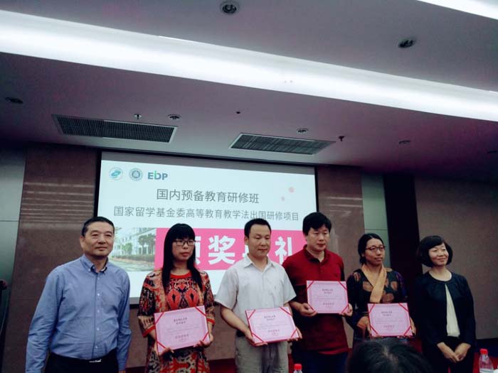 最后环节是颁奖典礼,郭世保等以上四位学员代表共同获得“最佳乐享奖”。国家留学基金委副秘书长李青和华东师大DP中心主任黄健分别为他们颁奖并合影留念。(植保教研室)