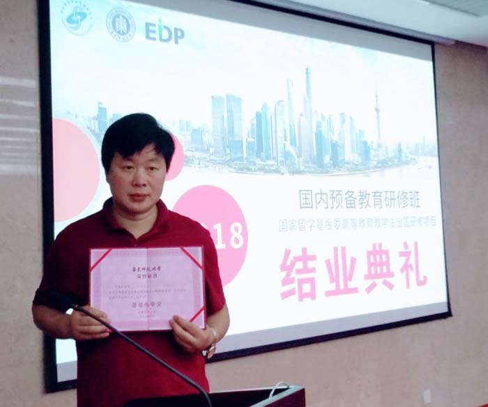 5月19日上午,2018年国家留学基金委高等教育教学法出国研修项目国内预备教育研修班(第五期)结业典礼在华东师范大学高级管理者发展与培训中心隆重举行。来自全国的参训学员和相关领导共171人参加本次结业典礼,我院教师郭世保作为学员代表做了《农业植物病理学》教学过程展示。