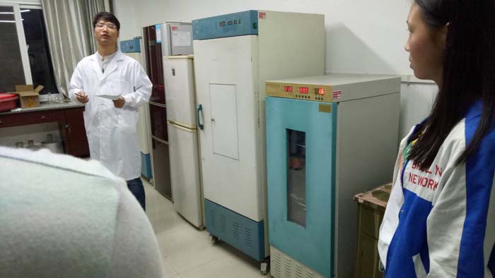 活动刚开始,徐老师首先给大家介绍了药用植物研究的现状、发展前景以及中药质量检测所包含的主要内容,从而给大家引出相关实验仪器在检测和研究过程中的应用。然后,徐老师结合实际带领大家深入各个实验室,依次给同学们展示并介绍了超声清洗器、旋转蒸发仪、冷冻干燥机、烘箱、超净工作台、索氏提取器、紫外分光光度计等基础设备的使用原理和操作方法。并重点介绍了气相色谱-质谱联用仪等大型检测设备的基本原理,以及仪器在挥发油组分分析等方面的应用。在活动的最后,徐老师鼓励大家在今后的学习过程中,理论联系实际、积极思考并提出相关问题,同学们认真听取并与老师积极互动。