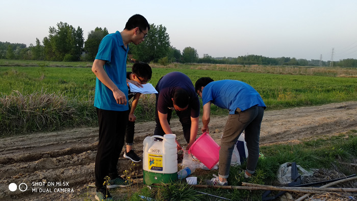 近日,正值小麦抽穗扬花期,也是小麦赤霉病预防关键时期。4月18日和24日,植保教研室陈利军和王国君老师带领所指导的植保15级本科生,先后两次到洋河农艺农机专业合作社教学实习实训场地开展本科生毕业论文“叶菌唑和戊唑醇及其复配制剂对小麦赤霉病田间药效试验”和“信阳主要作物挥发物组分分析及其对病原真菌的诱(驱)作用”。目前,试验已经完成田间小区划分、杀菌剂称量和配制、二次施药、样品采集,将进一步完成病害的调查和小麦挥发物组分的分析等工作。(植物保护教研室)